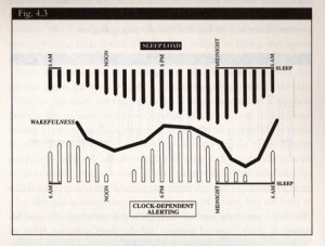 If you were to measure the circadian rhythms of people throughout the world, you should find that there are a wide variety of expressions of circadian cues. But when we look at the science of sleep, one representation of circadian rhythms prevails, and it often looks like this – which I’ve borrowed from Dement’s Promise of Sleep, and which I talk about extensively in my book, The Slumbering Masses: