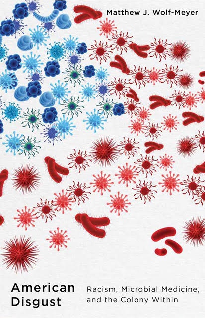 American Disgust: Racism, Microbial Medicine, and the Colony Within started with my interest in why, in 2013, the FDA and CDC were holding public meetings on the use of fecal microbial transplants. It ended up being an exploration of the history of the use of biological material in American biomedicine, which starts in the 19th century ethnological research of George Burke and moves into the 20th century with John Harvey Kellogg’s and Adelle Davis’ work on defining and expanding the American diet. In the present, it focuses on the use (and desire for use) of fecal microbial transplants by people who experience persistent gastrointestinal illnesses, for which microbial transplants are especially effective. Along the way, American Disgust examines how Americans learn disgust as integral to whiteness, reinforce these ideas through our diets and parenting practices, and enact disgust in efforts like the gentrification of diets and the Planetary Health movement. Centrally, American Disgust elaborates “regulation” as a mode of power that scales between microbes, human bodies, and political structures through which the retreat of government regulation of things like food and medicine become something that individuals and communities need to take responsibility for–which often finds its logic rooted in ideas about disgust grounded in racism.